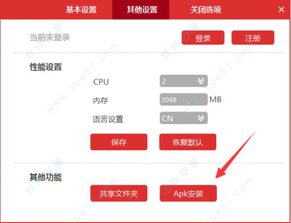 2、接着在“设置”界面的“其他设置”中点击“Apk安装”,之后将想要安装的本地apk文件添加进来就可以了。
