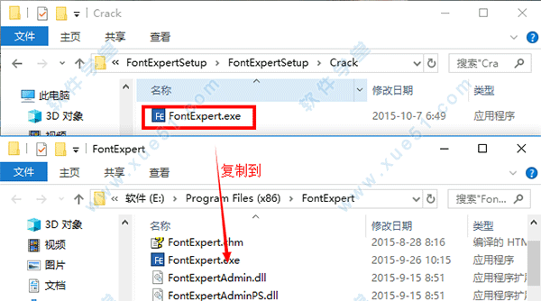 3、安装完成后,将数据包中“crack”文件夹下的文件复制到软件的安装目录下,默认安装目录:“C:\Program Files (x86)\FontExpert”。
