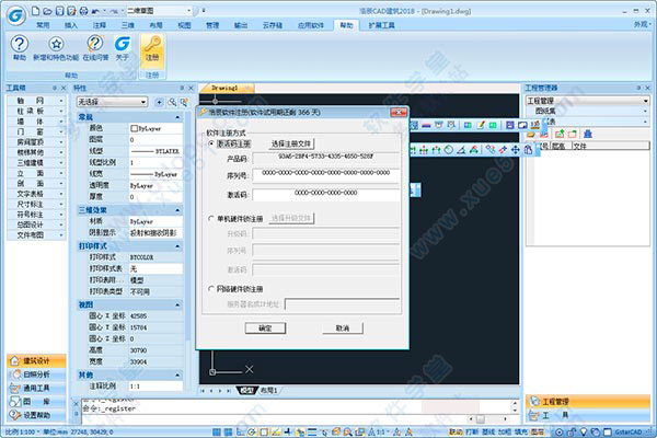 浩辰CAD建筑2018注册机是一款专门针对同名2018建筑cad软件进行破解的注册机,也就是激活辅助工具。我们大家都知道很多软件想要永久的使用,软件必须进行激活,那么就要用到破解文件、破解补丁、注册机等破解软件,任何软件也不例外。本站提供