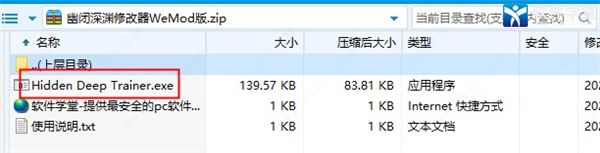 ps:下载修改器之前,请先下载安装好幽闭深渊游戏!1、在软件学堂下载该游戏修改器,并解压缩文件。