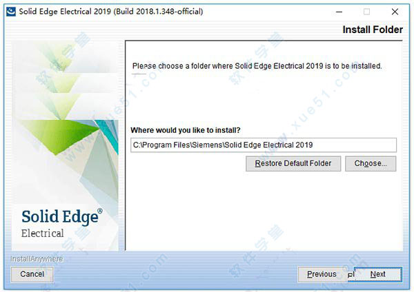 3、双击运行“exe”程序进行安装Solid Edge Electrical 2019原程序,并选择软件安装路径