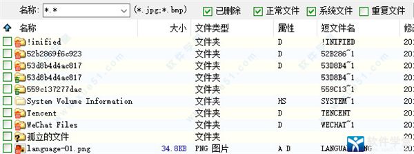 7、为方便用户识别搜索到的文件,软件默认情况下也会显示未被删除的正常文件,只是正常文件没有复选框,不可选择。