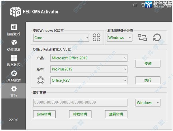 5、更改Windows 10版本、激活信息备份还原、Microsoft Office 零售版转换批量授权版