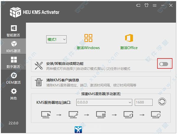 安装/卸载自动续期功能,两种模式可供选择[1]自动续订模式(默认任务计划模式