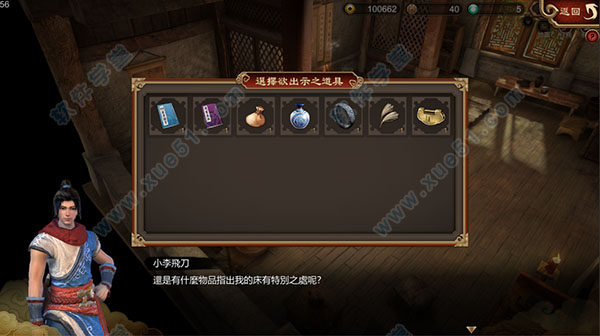 2、出示系统玩家将依据情报推理并搜集物品,再运用「出示」系统,将物品交给NPC,「出示」的对象不同,结果可能大相径庭,甚至影响剧情走向。 此外,「出示」还能运用于战斗中,即使敌强我弱,战力悬殊,透过出示物品,可能逆转战局,克敌制胜。