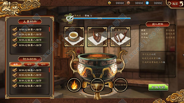 4、制药系统前往三大主线重要城市-「洛阳」可开启的生产系统,玩家可以放入随机药材进行制药,透过简单的小游戏来提高药品的质量。