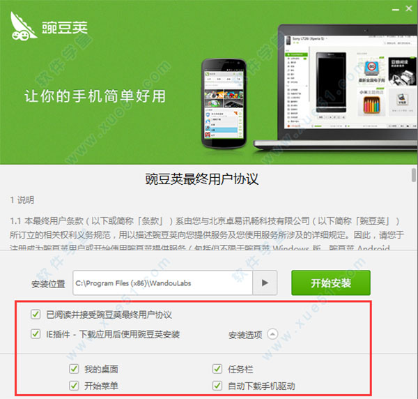 1、在本站下载最新版的豌豆荚安装包并解压,双击运行主程序