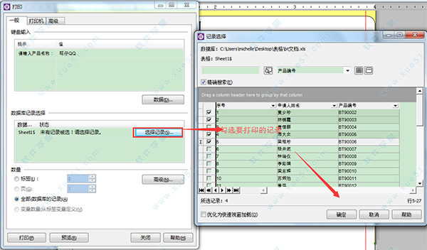 3、如果您连接的数据库,设置了数据检索。那么,当您在打印的时候,您还可以选择打印数据库中的某些数据。