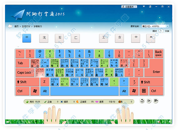 英文打字练习包括指法练习、单词练习 、短语练习和文章练习