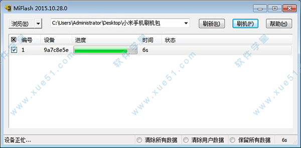 Miflash是一款功能强大的小米手机专用刷机工具。软件除支持Miflash平台外,软件还兼容MTK、高通等多个平台,多平台的红米手机也可用此平台刷机!不过在刷机之前要先下载两个完整包.软件和2.3.5c到本地电脑把手机关机,按开关机键加音量下键,强制进入fast boot模式,将手机插入USB线连接电脑,打开对话框点击refresh,此时系统会自动搜到一个端口,然后点击flash开始刷机,操作非常简单,如果你不是很清楚的话,下面小编为你精心整理了详细的刷机教程,能够帮助你快速刷机。本站提供miflash刷机工具官方版下载,有需求的朋友欢迎前来本站下载使用。