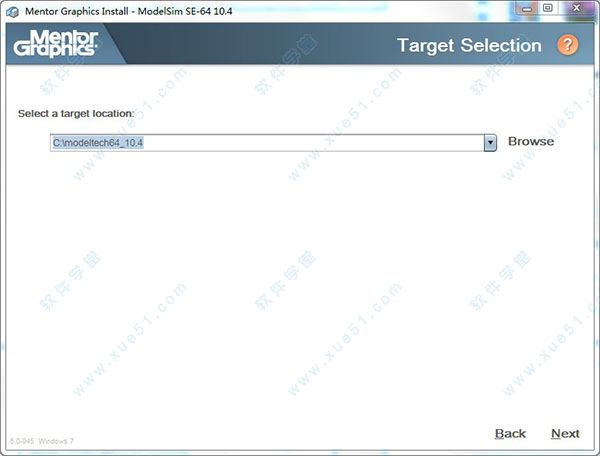 2、点击“Next”进行下一步,选择ModelSim SE 10.4软件安装目录,这里选择默认目录为C:modeltech64_10.4