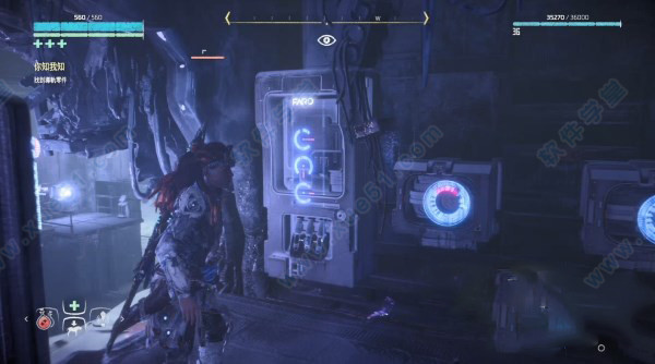进来发现这是个机库,爬上梯子,再爬到对面启动控制台,下面的飞机就会向后移动。