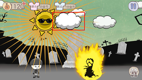 本关要在鬼魂抓到史小坑之前,将史小坑头上的云拨开,真有拨云见日的感觉。如此即可过关。