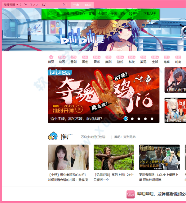 4、哔哩哔哩电脑版上的【主站】单击可直接切换到该软件默认展示界面。